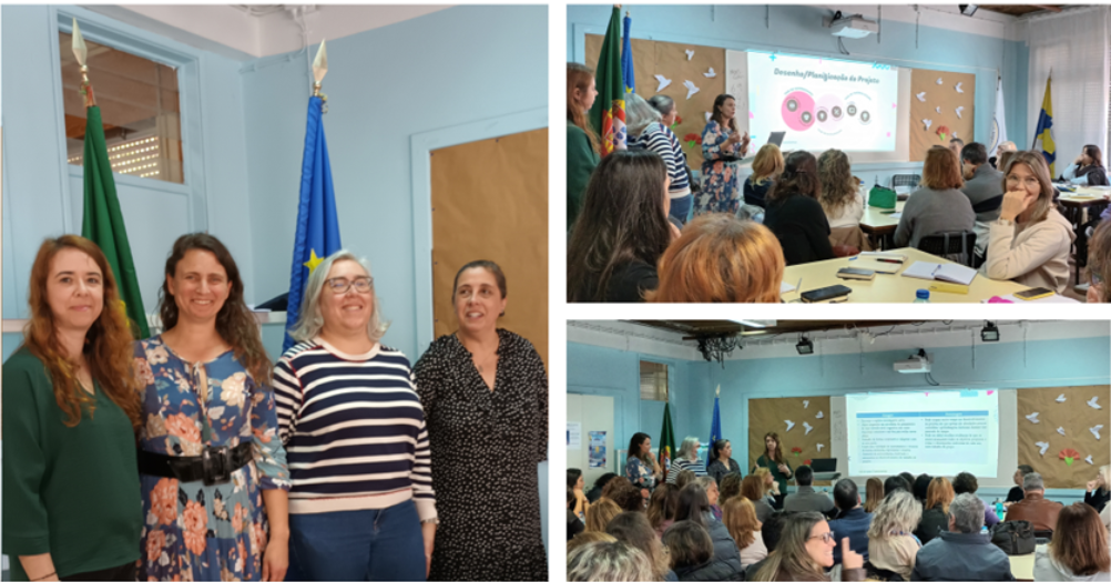 No passado dia 25 de março, realizou-se na sede do Agrupamento de Escolas Anselmo de Andrade uma Ação de Curta Duração (ACD) sobre Trabalho Projeto, dinamizada pelas docentes Ana Reis, Cláudia Fernandes, Tânia Domingues e Teresa Cardoso, no âmbito do projeto KA1 ‘Inovar para Transformar’.