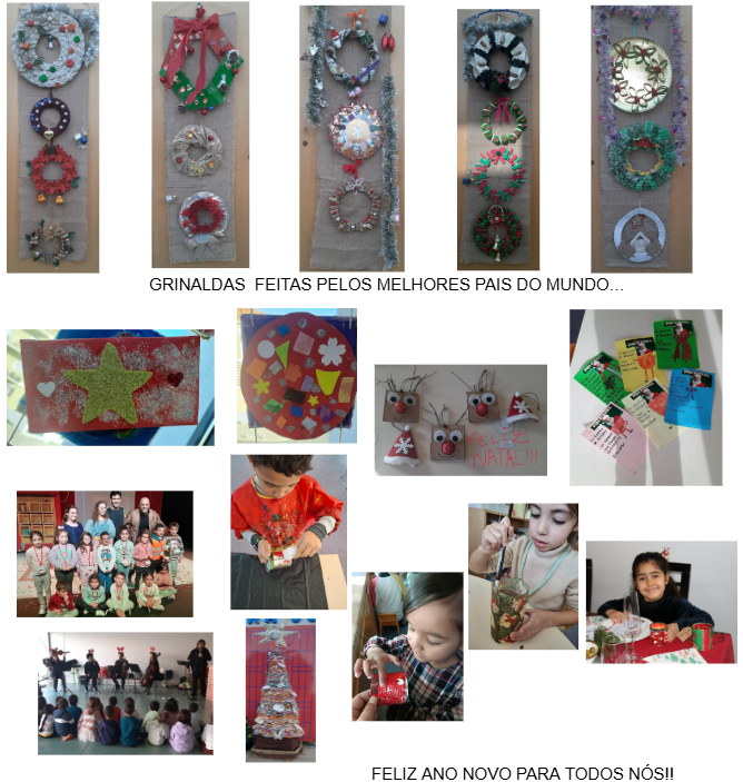 Passou-se mais um Natal! Na pré A, da Feliciano Oleiro, dezembro foi mês de os pais fazerem grinaldas; de na sala fazermos trabalhos, em que abordámos também as figuras geométricas; de escrevermos a carta para o Pai Natal; de irmos ao teatro; de ouvirmos um quarteto de cordas maravilhoso e por fim de pintarmos uma “lanterna”, para oferecer aos nossos pais, embrulhada a preceito, para enfeitar a mesa de Natal lá de casa!!