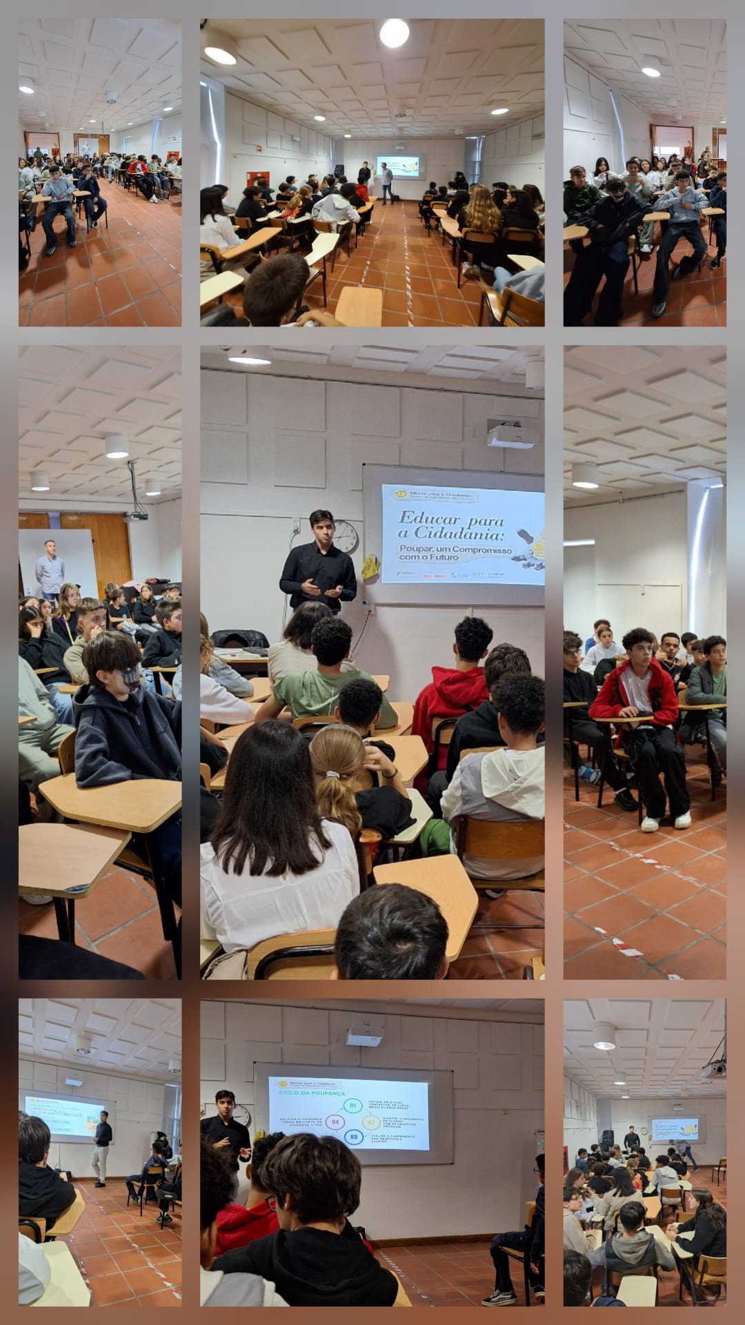 A palestra contou com a participação de 51 alunos, nomeadamente das turmas 8.ºC e 7.º E. O estudante do Ensino Superior partilhou com os jovens ferramentas e conhecimentos essenciais para a gestão responsável do dinheiro.